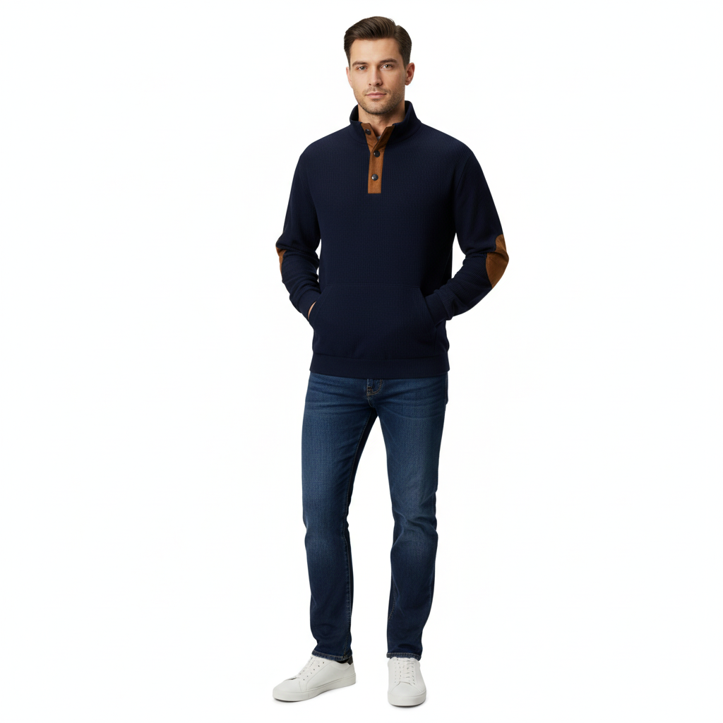 Stay effortlessly stylish with the FREE PEOPLE Black Quarter-Snap Pullover, designed for comfort, versatility, and a touch of rugged elegance. This pullover features rich brown suede detailing on the snap-button collar and elbow patches, bringing a modern yet classic look to your everyday wardrobe.