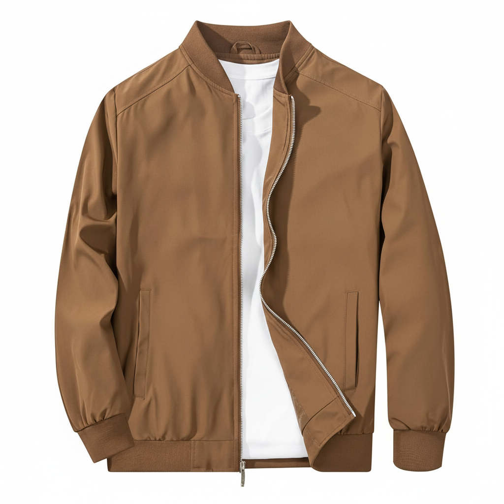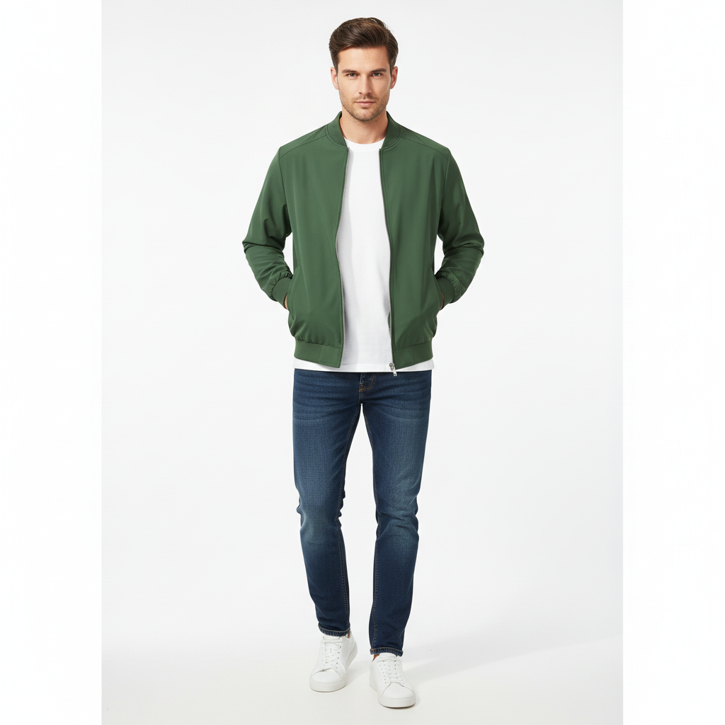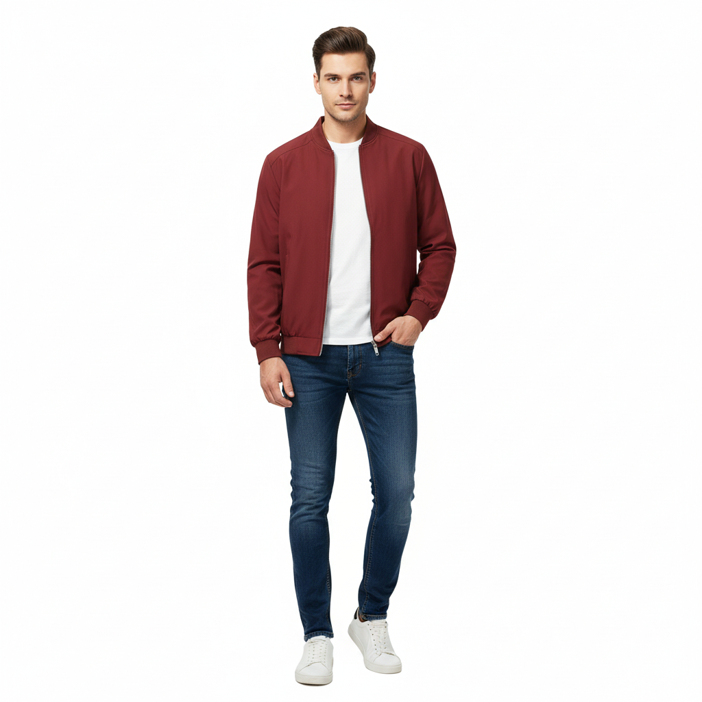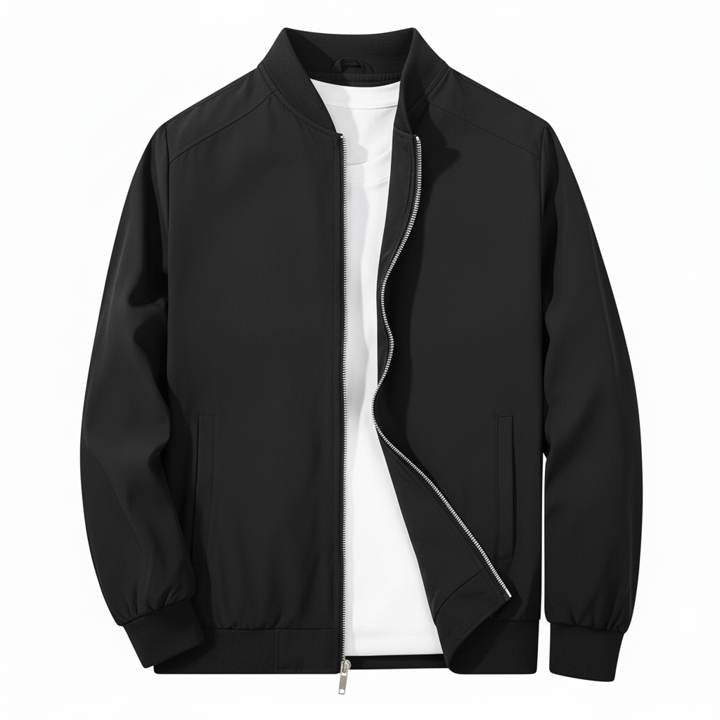 The full front zipper offers easy layering, while side pockets provide function and convenience on the go. Perfect for casual days, travel, or cool evenings, this bomber combines simplicity with a refined fit.